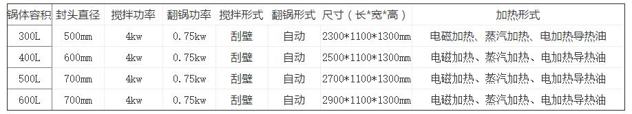 全封閉槽形鍋體,夾套采用電磁加熱、電加熱導熱油、蒸汽加熱等加熱方式,受熱面積大,熱效率高,適合不同物料對溫度和升溫速度的要求。 電磁加熱:精確的微電腦自動溫度測控,數(shù)字顯示物料即時溫度,并配置9個檔位控制,精確度高,穩(wěn)定可靠。 電加熱導熱油:采用電加熱導熱油方式,具有受熱面積大、熱效率高、加熱均勻、加熱溫度易控制等特點。 蒸汽加熱:采用蒸汽(夾套)加熱。受熱面積大、熱效率高、加熱均勻、傳熱系數(shù)低,能夠通過壓力的控制來調控蒸汽溫度,配有壓力表和安全閥,液料沸騰時間短,加熱溫度容易控制。 全自動液壓、機械傾翻鍋體,倒料無死角,易于清洗,節(jié)省人力,降低勞動強度。 高效、節(jié)能,運行費用更低;安裝、操作簡單,占地面積小,減少配套成本。